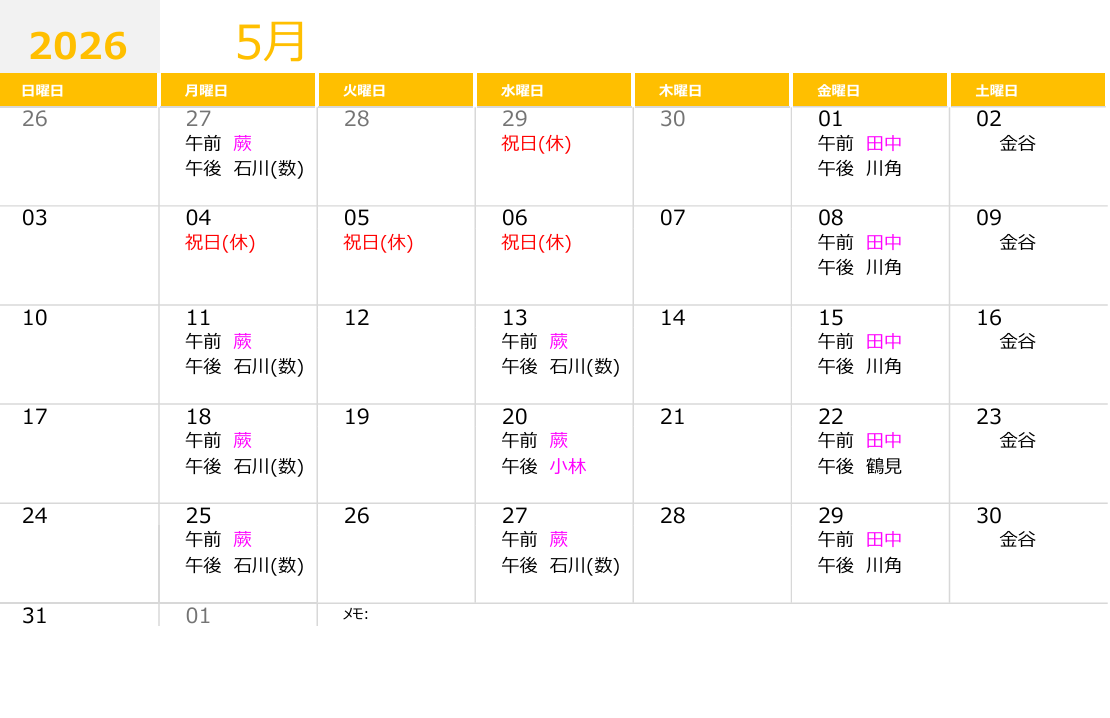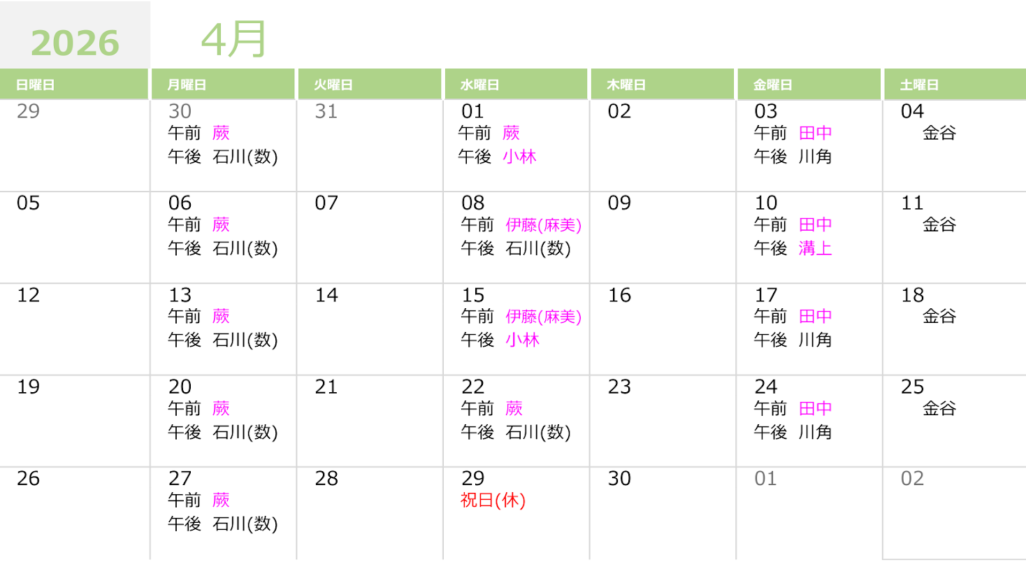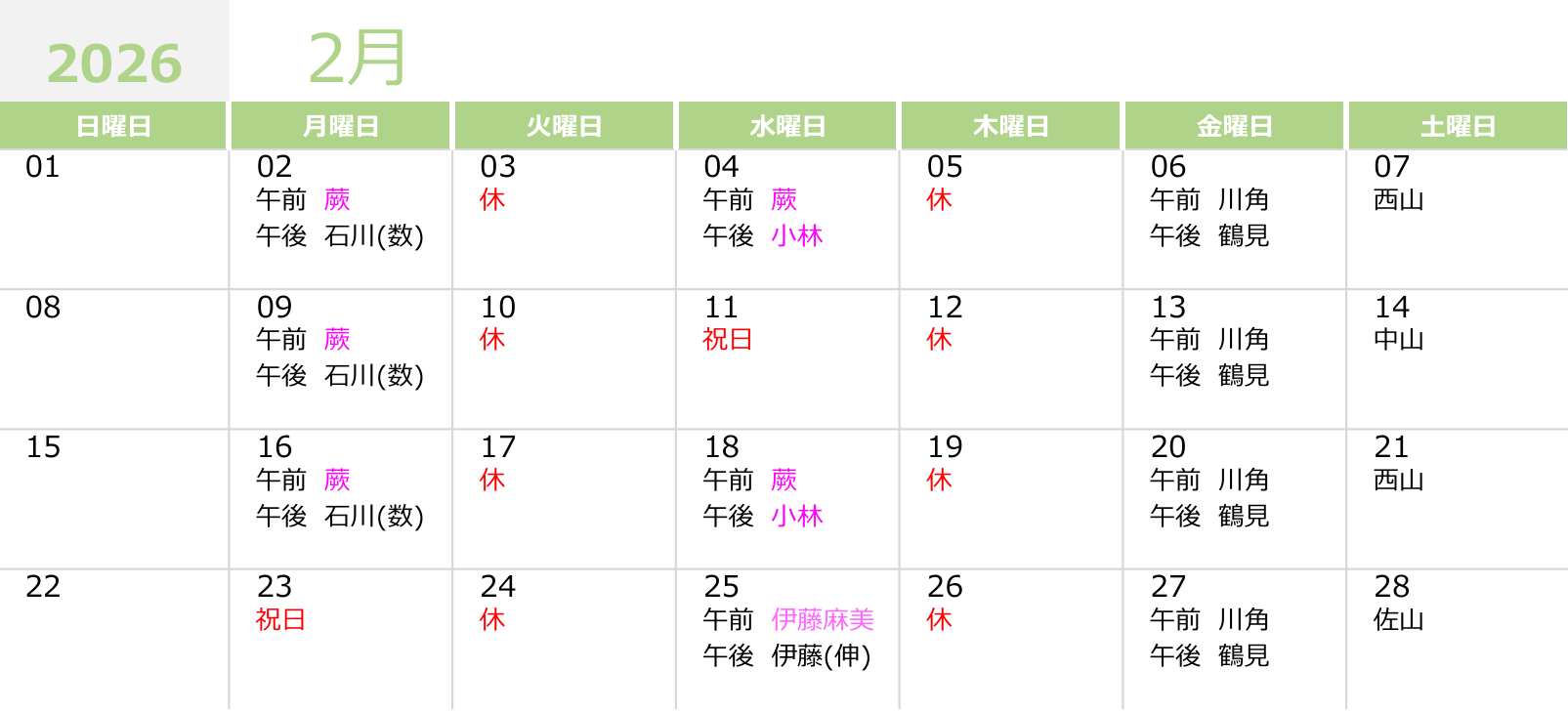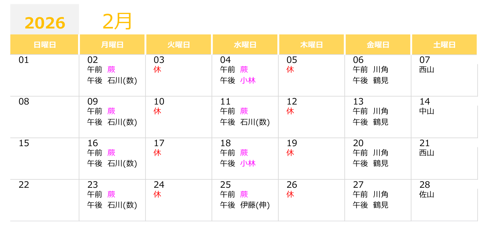 注:担当医師は急遽変更となる場合がございますので、あらかじめご了承ください。
